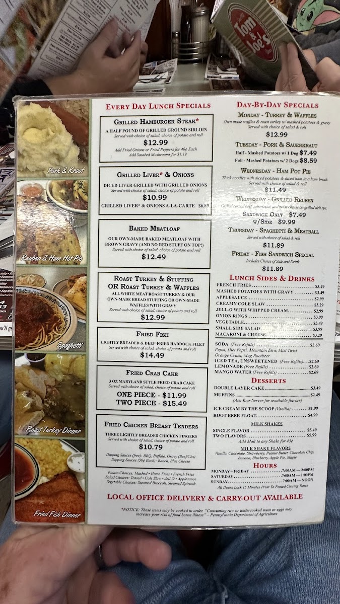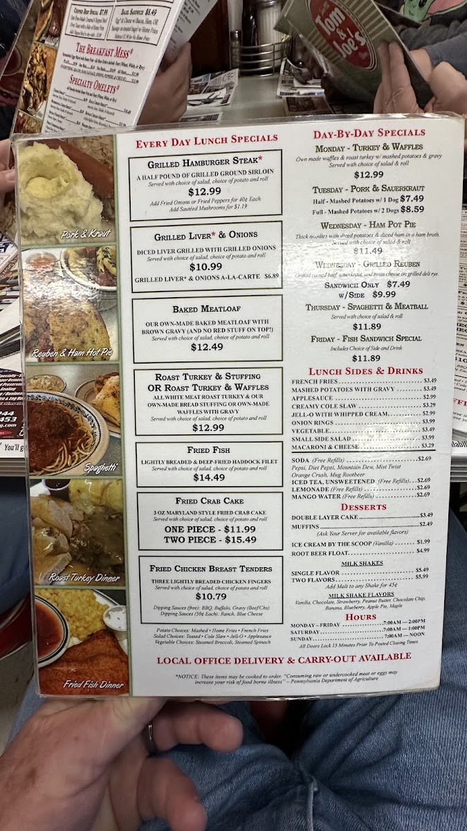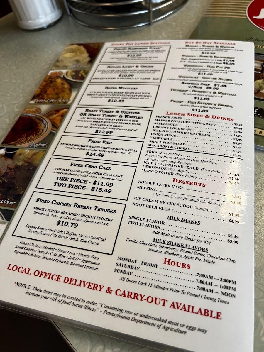 Own made waffles & roast turkey w/ mashed potatoes & gravy. Served with choice of salad & roll
