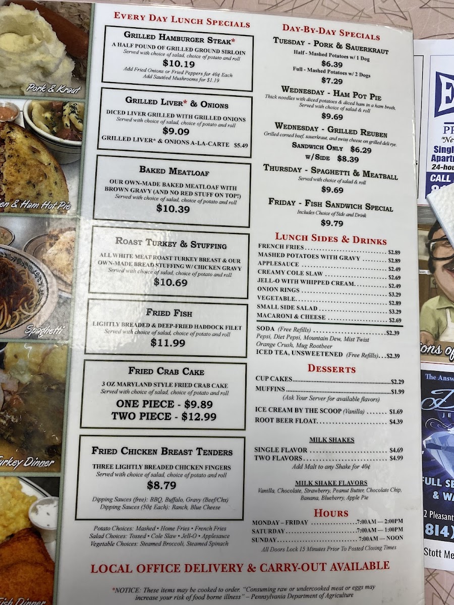 Thick noodles with diced potatoes & diced ham in a ham broth. Served with choice of salad & roll