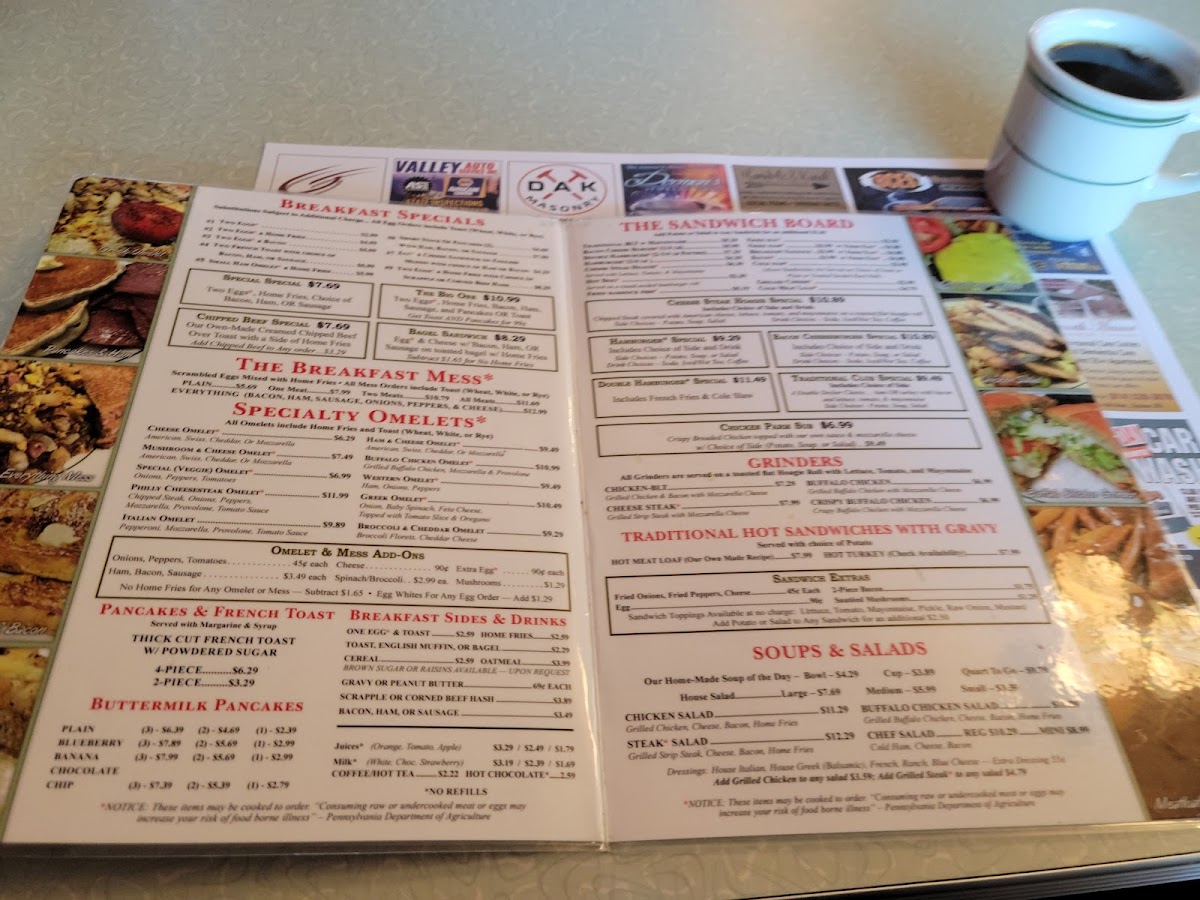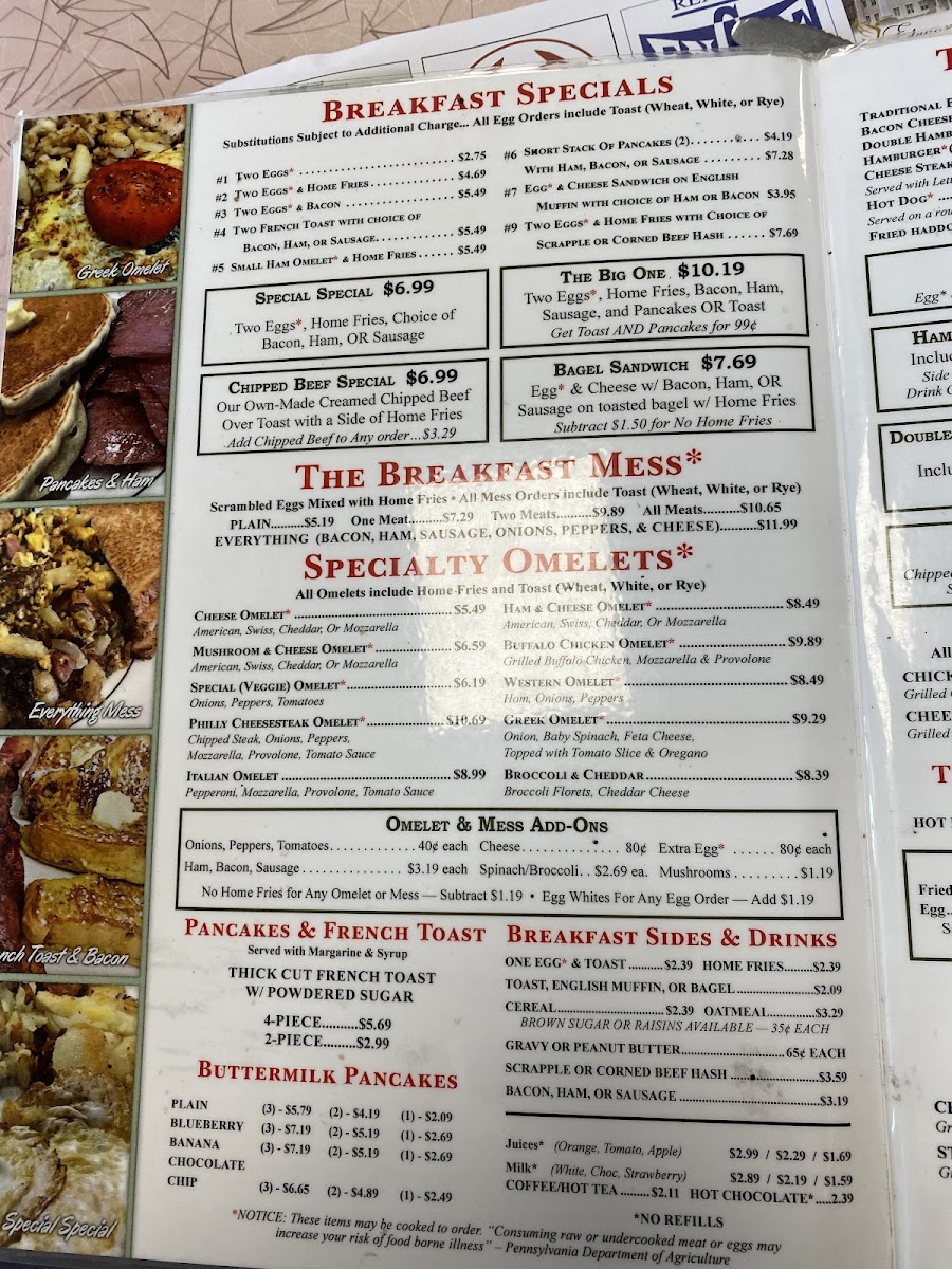 Ham, Onions, Peppers. All Omelets include Home Fries and Toast (Wheat, White, or Rye)